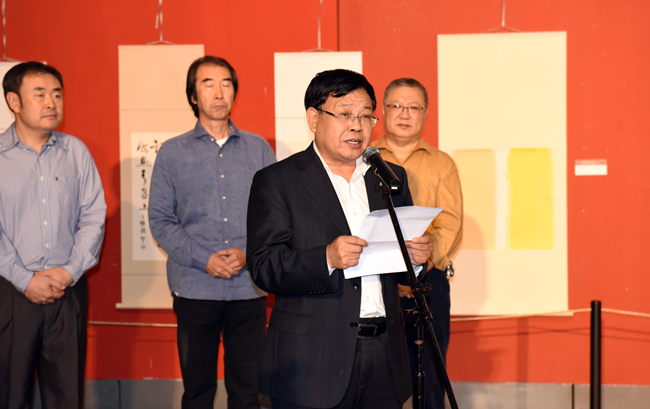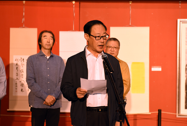 王选章在致辞中指出,值此游寿先生诞辰一百一十周年之际,举办《“游门学子”高润生•王立民•栾继生艺术作品展》,以缅怀游寿先生为中国书法事业的发展、为黑龙江书法事业的进步,特别是为哈尔滨师范大学培养书法才俊做出的卓越贡献。游寿先生毕生从事文史、书法研究与教育工作。既为我国文史、考古、书法艺术增添了光辉,也培养了众多的文史和书法人才。“游门学子”是游寿、周齐、王大安等先生共同组成的师大书学团体。这个团体所形成的具有深厚文化底蕴的“金石书风”是当今书坛所倡导的学者型书法的缩影。