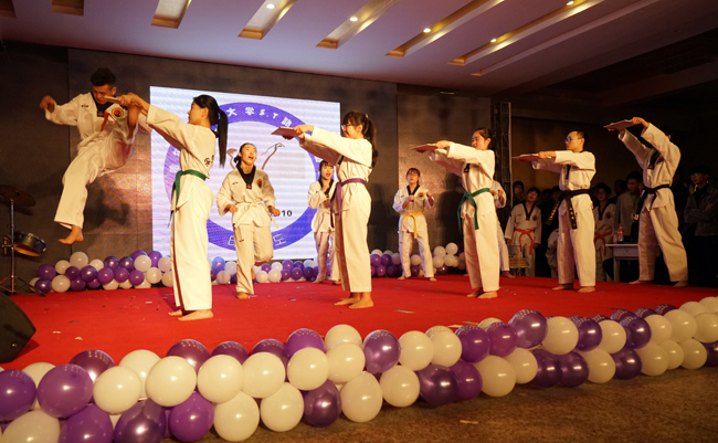 随着强劲的鼓声响起,在主持人端庄大方的开场后,晚会拉开序幕。节目异彩纷呈,有激情的现代舞,有特色的民族舞,有幽默诙谐的小品,有动作优美的异域风情舞,有跆拳道、英语配音、书法展示、cosplay等节目,充分展示了美术学院学生的社团特色。晚会过程中,学生把校园生活与父母亲情结合,共同演绎了小品《亲不隔疏》,感人至深、触人心弦。晚会特别邀请美术学院青年教师王腾飞带来了自己的原创作品《哈师大 我的家》,这首作品在网络媒体一经发表,关注不断,王腾飞精彩的演绎带动全场师生合唱,声势空前。精彩纷呈的节目把晚会推向一个又一个高潮,掌声和欢呼声响彻整个大厅。