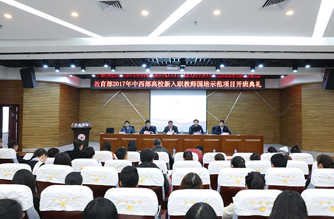 (梁大战/文)10月24日上午,教育部2017年中西部高校新入职教师国培示范项目培训班开班典礼在我校梦溪宾馆二楼报告厅举行。我校校长孙立军,省教育厅高等教育处处长蒋鲲、副处长王跃然等出席典礼。开班典礼由省高校师资培训中心常务副主任梁大战主持。来自全省34所本科高校的100名新入职教师参加了本次培训。
