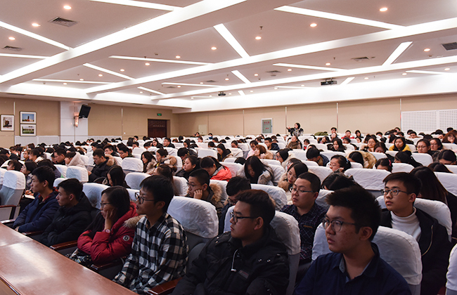 报告会上,亓利教授首先与参会师生分享了自己学习贯彻党的十九大精神和习近平新时代中国特色社会主义思想的心得体会。亓利教授从“三个事关”、“四个新”、“五个聚焦”入手,用深入浅出的语言表达、层次清晰的图文展示、精准简练的浓缩概括,解读和阐释了十九大报告。亓利教授指出,党的十九大“创新思想”、“巩固核心”、“配齐队伍”、“提升境界”,对实现中华民族伟大复兴中国梦具有开创性、里程碑和划时代的重大意义。亓利教授从“新思想在伟大实践中孕育而生”、“新思想在探索规律中形成体系”、“新思想在时代征程中引领发展”三个层面,对学习把握习近平新时代中国特色社会主义思想进行了阐述,强调广大研究生要正确认识中国和世界发展大势,正确认识中国特色和国际比较,正确认识时代责任与历史使命,正确认识远大抱负与脚踏实地,用新思想指引新实践,用新实践成就新梦想。