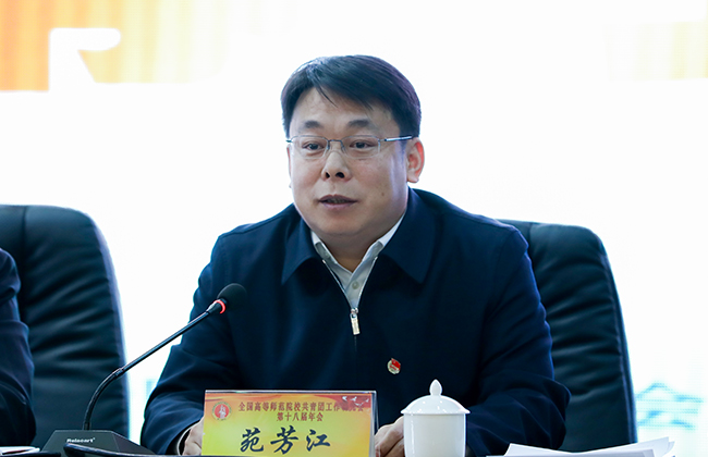 团省委书记苑芳江在致辞中表示,正值全国上下深入学习贯彻党的十九大精神,特别是深刻学习领会宣传贯彻习近平新时代中国特色社会主义思想这个重要时期,也正值全国高师院校深化共青团改革的关键时期,在哈尔滨师范大学召开这样一届年会,意义非常重大,机会非常难得。各级团组织和广大团干部要切实提高思想认识,正确看待共青团改革,围绕“强三性”、“去四化”根本要求,珍惜青春岗位,引领青年成长,推动青年事业。哈尔滨师范大学是一所具有优秀办学传统,高度重视思想政治工作,大力支持共青团工作的高等学府。在学校党委的关心指导下,共青团深入推动改革发展,充分发挥共青团组织育人、文化育人、实践育人、服务育人功能,在青年学生的思想成长、社会实践、志愿服务、素质拓展、社团建设等方面开展了一系列卓有成效的探索和实践,形成了一些团学工作品牌,走在了全省高校共青团前列。特别是今年十月,在全省高校中率先主动到服务地小学开展“三点半公益课堂”志愿服务活动,积极探索实践育人项目化运行机制,收到了很好的育人实效和社会效益,充分发挥了高校服务社会的办学功能,以实际行动践行了习近平总书记“办人民满意的教育”要求。