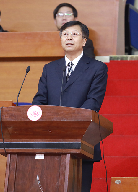 校党委书记作了题为《以人为本 凝心聚力 奋力谱写学校改革发展的新篇章》的讲话。他指出,这次召开全校教职员工大会,一是通过对一些突破性的成果进行奖励表彰,鼓舞士气,振奋精神,提升自信;二是新班子和大家见面,昭示新班子团结一致带领全校教职工戮力前行的决心、信心和态度;三是通过总结成绩,盘点家底,统一思想,明确目标,真抓实干,让校荣我荣、校衰我耻嵌入心底,共同谱写哈师大奋进的新篇章。