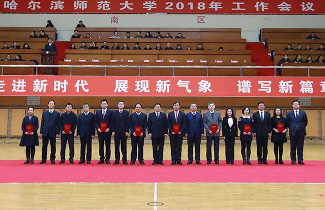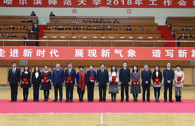 校党委书记重点强调了2018年学校党委工作:坚持以习近平新时代中国特色社会主义思想为指导,深入贯彻落实党的十九大精神;强化理论武装,扎实做好“两学一做”学习教育常态化制度化和“不忘初心,牢记使命”主题教育;加强基层党组织建设,不断提升组织力、凝聚力、战斗力;不断加强党风廉政建设,在全校树立清风正气的政治生态;牢固坚持立德树人的根本任务,切实把全国全省高校思想政治工作会议精神落实落靠;高端站位,科学谋划,深化学校综合改革;加强人才队伍建设,守好学校发展的“压舱石”;以提高人才培养质量为核心,全面决胜本科教学审核评估工作;坚持以人为本,不断提升管理服务专业化、精细化水平;深化民主管理,全面实施和推进依法治校;坚持问题导向,科学有序解决制约学校发展的问题;要开展校园综合整治,营造良好的育人环境。在专门提到今年将完成的江南校区景观改造工作时,他特别指出,江南校区是哈师大的发源地,是哈师大的根,我们要让根越扎越深,要把她打造成哈师大靓丽多彩的名片,打造成一座让空气中都流淌着艺术气息和艺术细胞的现代化大学校园。在发展战略上要推动南北校区协调发展、共同繁荣。