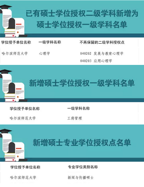 此次学位点建设取得新突破,哈尔滨师范大学几代学人的梦想得以实现,是学校党政领导高度重视学科建设工作、学科建设单位长期积累、研究生学院精心组织学科申报工作、各二级培养单位积极配合努力的结果,这不但使我校博士点数量位居省属高校前列,而且填补了我省马克思主义理论、世界史、地理学等一级学科博士学位授权点和心理学一级学科硕士学位授权点的空白,对推动我校乃至我省“双一流建设”有着重大的作用和意义,是我校办学历程的重要里程碑。