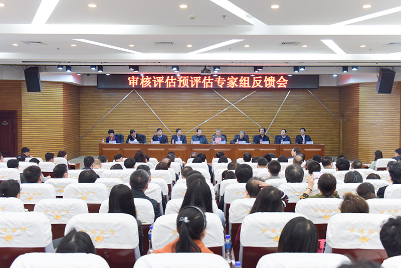 按照学校审核评估预评估工作安排,全面总结审核评估工作,3月27日下午,审核评估预评估专家组反馈会议在我校梦溪宾馆二楼大会议室召开。审核评估预评估专家组组长、东北师范大学研究生学院院长高夯教授,华中师范大学博士生导师凌云教授,齐齐哈尔大学副校长邓启刚教授,辽宁师范大学文学院院长张庆利教授,黑龙江大学教务处处长吴华洋教授,对外贸易大学博士生导师向明友教授,哈尔滨工程大学本科生院副院长兰海教授,哈尔滨工业大学公共艺术研究所所长林建群教授出席会议。学校党政领导,学校各学院(部)院长(主任)、书记、副院长、副书记、系主任、本科专业负责人、教研室主任,以及机关各职能部门负责人、审核评估各专项组成员、教务处、高教研究与教学质量评估中心全体同志参加会议。会议第一阶段由高夯主持,第二阶段由我校副校长臧淑英主持。