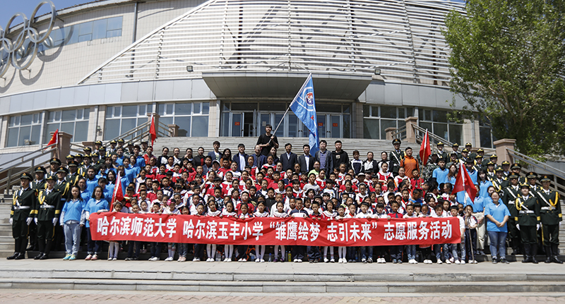 (李志宇/文)5月9日上午,我校与哈尔滨玉丰小学开展“雏鹰绘梦,志引未来”志愿服务活动。本次活动包括学府参观和大学生活体验两项内容。我校党委常委、副校长杨锐锋,团委、图书馆、教师教育学院及玉丰小学领导出席活动,教师教育学院志愿者、玉丰小学全校学生和志愿活动相关人员参加活动。