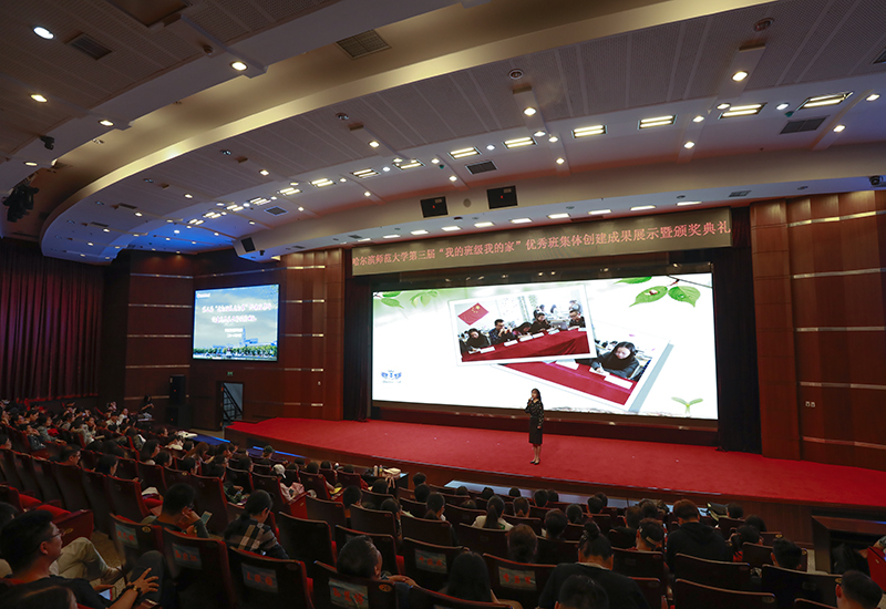 在随后进行的优秀班集体创建成果展示中,获得优秀班集体荣誉的11个班级依次进行了成果展示,分别介绍了优秀班集体创建过程中取得的成绩与收获,分享了创建经验及心得体会,用榜样的力量、优秀的事迹鼓舞和激励师大学子奋发图强。获奖班级讲述人分享各个集体参与志愿服务、义工之旅,传承民族文化的博大爱心;全身心投入创新创业、社会实践,用艰苦拼搏凝练青春意志的决心;各班级团结进取、亲如一家,述说兄弟姐妹的无限亲情;学习与活动兼容并蓄、厚积薄发,用奋斗抒写未来的豪言壮志;青春峥嵘、永不言败、敢为人先的拼搏意志,都给在场观众留下了深刻印象。