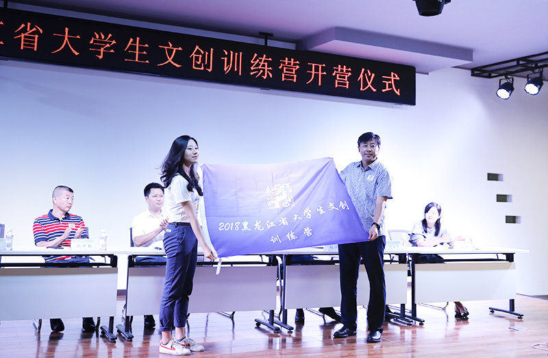 (毕坤/文)为深入贯彻落实党的十九大报告中对文化建设的若干意见,进一步提升我省大学生的文化自信,发挥高校文化传承创新的优势与作用,推动中华优秀传统文化及我省优秀文化产品创造性转化、创新性发展,7月12日,由黑龙江省普通高校创新创业教育指导委员会、黑龙江省大学生文创联盟主办,黑龙江省文化厅博物馆处、黑龙江省教育厅高教处指导,黑龙江省文化创意产业协会、哈尔滨师范大学承办的2018黑龙江省大学生文创训练营开营仪式在我校双创园举行。省教育厅高教处处长蒋鲲、省文化厅博物馆处处长张国田、我校团委书记王洪新、省文化厅博物馆处副处长陈玉芝、省文化创意产业协会副会长赵中新、省文化创意产业协会副秘书长陈婧等出席本次开营仪式。开营仪式由校团委副书记毕坤主持。