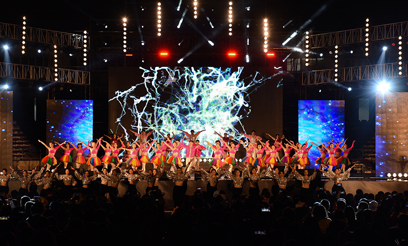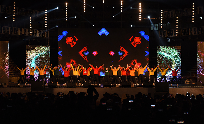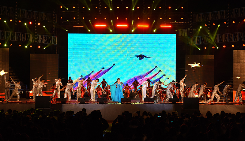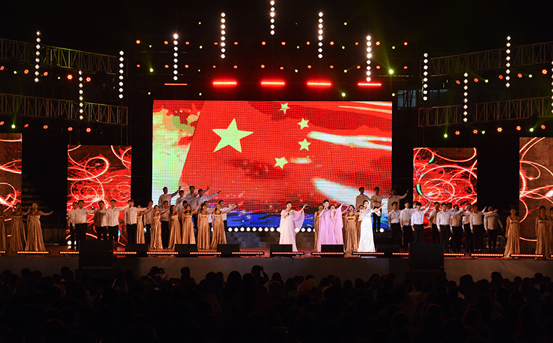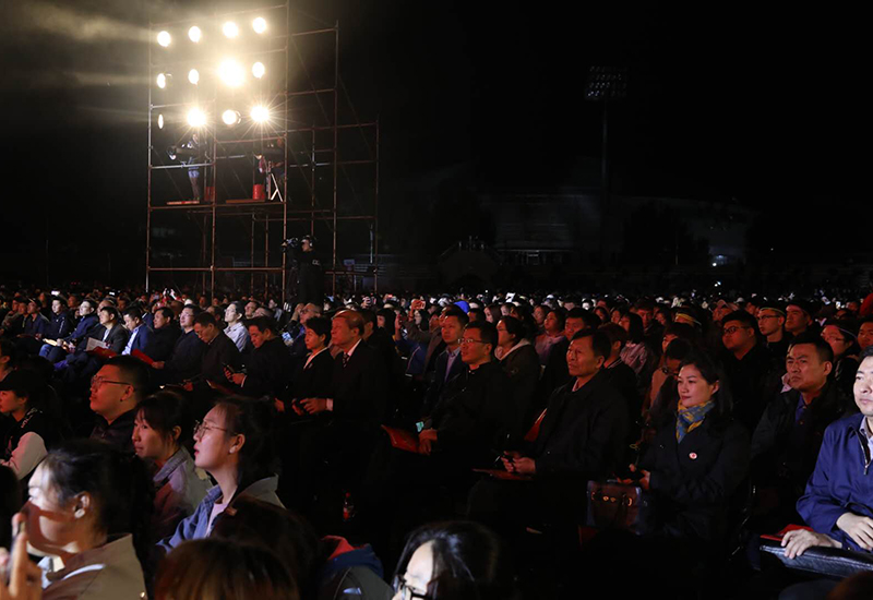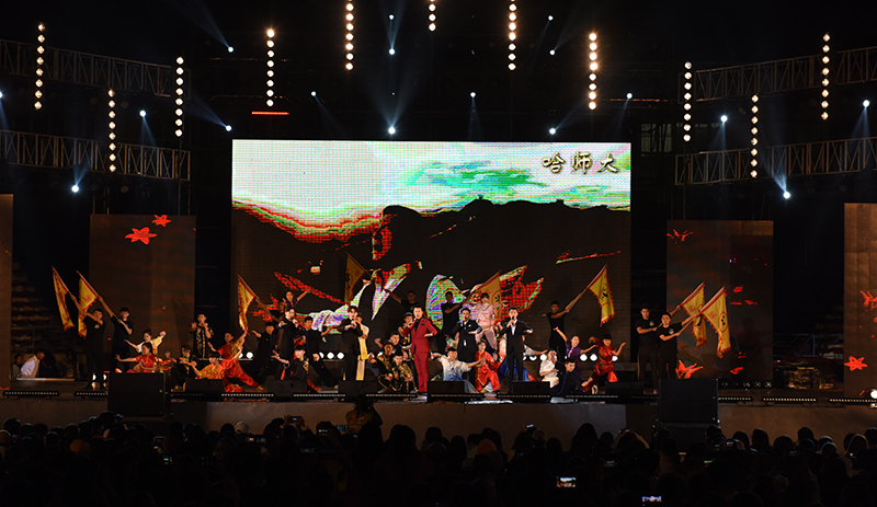 (刘强/文)为宣传贯彻党的十九大精神,纪念改革开放40周年,喜迎国庆69周年,落实全国教育大会精神,推进美育教育,繁荣校园艺术文化,体现我校高度重视以文化人、以文育人的优秀办学传统和人文精神,在2018级新生入学之际,我校于9月26日在江北校区体育场隆重举办了“情系师大·同心圆梦”2018哈尔滨师范大学“庆国庆·颂改革·迎新生”大型歌舞晚会。团省委副书记王淑滨,我校党委书记,校长孙立军,党委常委、副校长杨锐锋,党委常委、副校长马明,党委常委、纪委书记郭加利,党委常委、副校长何晶,党委常委、组织部长刘柏清等学校领导及各部处负责人,团哈尔滨市南岗区委、团哈尔滨市呼兰区委部分领导及我校全体2018级新生万余人现场观看了演出。
