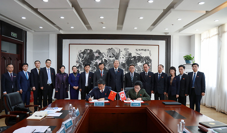 图 我校校长孙立军与朝鲜金亨稷师范大学校长边奎顺签订国际教育合作协议