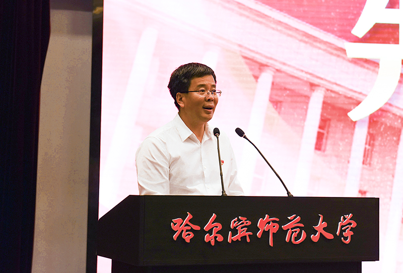校党委书记强调,面对全面振兴全方位振兴龙江经济的新要求,面对我校建设国内一流师范大学的新目标,站在新的历史起点上展望未来,一是必须坚定政治信仰,做到对党绝对忠诚。要严守政治纪律、政治规矩,牢记立德树人的根本任务,使我校成为坚持党的领导的坚强阵地,要加强学校各级党组织建设,使每个师生党员都做到在党爱党、在党言党、在党为党,永不叛党。二是必须坚持从严治党,营造良好政治生态。党员干部要干事创业敢担当,努力创造经得起师生检验的实绩,要保持清廉的政治本色,清清白白为官、干干净净做事、老老实实做人。三是必须坚持以人为本,推进学校改革发展。要牢记宗旨意识,牢固树立以学生为中心的发展思想,将学校对员工的关怀和温暖与员工对学校的忠诚与奉献有机结合起来,同心同德建设哈师大利益共同体、责任共同体、命运共同体,汇聚哈师大的强大合力。四是必须不忘初心牢记使命,扎实搞好主题教育。要把新时代中国特色社会主义思想转化为推进改革发展稳定和党的建设各项工作的实际行动,把初心使命变成党员干部锐意进取、开拓创新的精气神和埋头苦干、真抓实干的自觉行动,推动党的路线方针政策落地生根。