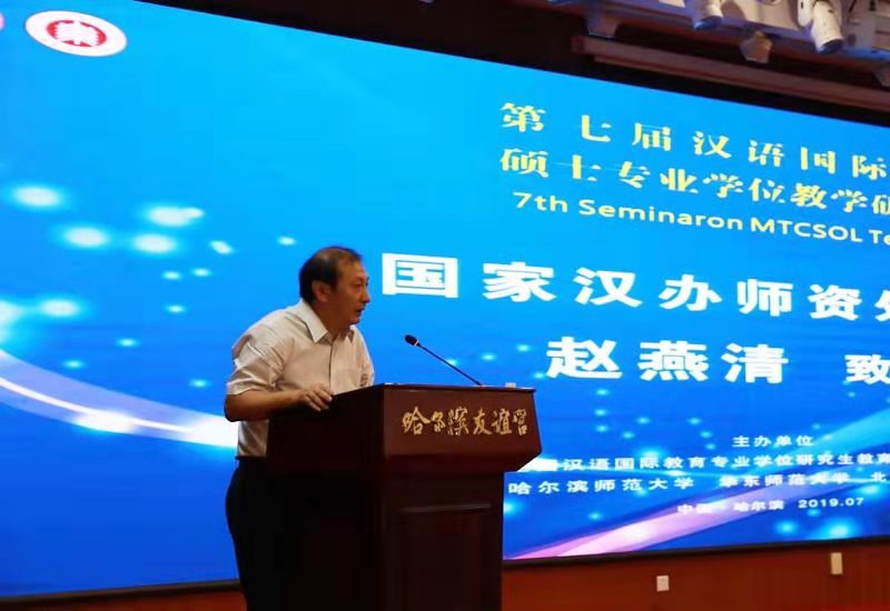 7月29日上午,由我校和全国汉语国际教育专业学位研究生教育指导委员会、华东师范大学、北京师范大学共同主办的第七届汉语国际教育硕士专业学位教学研讨会在哈尔滨友谊宫举行。全国汉语国际教育专业学位研究生教育指导委员会副秘书长、孔子学院总部/国家汉办师资处处长赵燕清,我校党委书记教授出席开幕式并致辞。开幕式由我校党委常委、副校长张喜田教授主持。