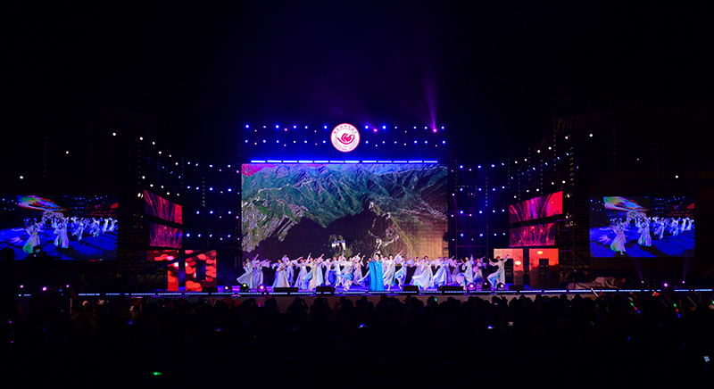 在大气恢宏的学校宣传片后,晚会在充满活力与朝气的歌舞《今天是你的生日》中正式拉开帷幕,青春洋溢的歌舞瞬间点燃全场观众的热情;歌舞《光芒》、展现了师大学子蓬勃的朝气与积极向上的精神风貌;讲述《向哈师大报到》表达了经历六十八载风雨兼程,薪火相传的师大人对母校弦歌不辍、芳华永续的祝愿;歌舞《不忘初心》带我们深切感受到伟大的中国共产党,与广大群众同呼吸、共命运、心连心,为中国人民谋幸福、为中华民族谋复兴的初心使命。歌曲《渴望光荣》旋律激昂高亢、气势磅礴,令人深深为之震撼;联唱《一路向北》《耐人寻味》《烟火里的尘埃》《缘分一道桥》《我在黑龙江等你》表现了以师大为家、以龙江为家的赤诚之爱,以歌言志、以乐动人,其独特魅力彰显了我们的信念和精神;新疆少数民族舞蹈《欢乐的跳吧》以舞抒怀,尽情展现民族团结一家亲;《我爱你中国》将中华儿女心中对祖国的无限深情表达得淋漓尽致;武术表演《武韵悠长》刚柔并济、唯美激昂,将演出推向高潮;歌曲《在此刻》展现了师大人向着明天、向着未来,万丈雄心,脚踏实地,昂首迎接新时代的坚定信念。歌舞《江山》用音符描绘了一幅祖国的江山长卷,描绘了中国绝美的壮阔蓝图。晚会在现场万人大合唱《我和我的祖国》中落下帷幕,嘹亮的歌声,舞动的红旗,万余名师生向祖国深情告白,寄托了师生们对伟大祖国深深的热爱和生活在新时代的无限自豪。