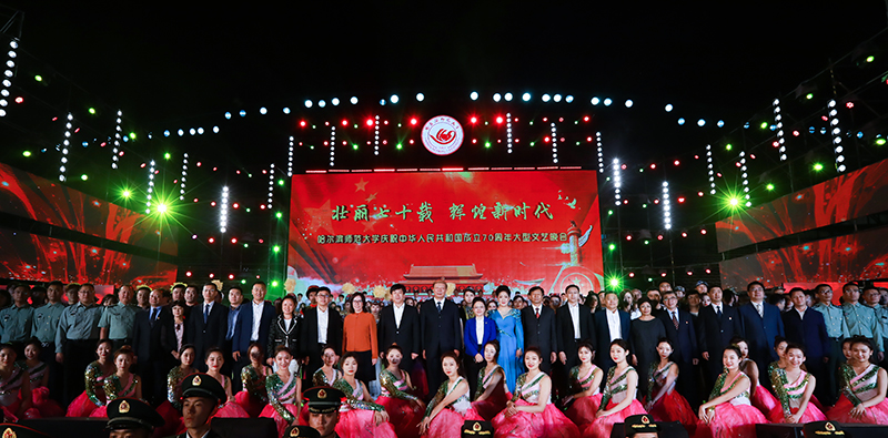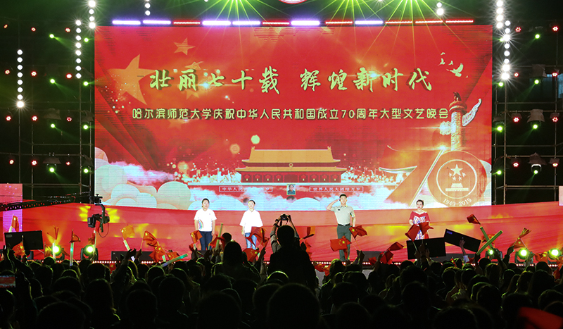 (刘强/文)为庆祝新中国成立70周年,表达全校师生对伟大祖国的深深祝福,推进美育教育,繁荣校园艺术文化,在全校深入开展“不忘初心、牢记使命”主题教育之际,9月25日,我校在江北校区体育场隆重举办了“壮丽七十载,辉煌新时代”庆祝新中国成立70周年大型文艺晚会。“不忘初心,牢记使命”主题教育省委第九巡回指导组、省委宣传部、省教育厅、省文化和旅游厅、团省委、团市委、哈尔滨新区团委、南岗区团委、呼兰区团委领导,我校党政领导、机关部处、各学院领导及在校师生代表一同观看了演出。