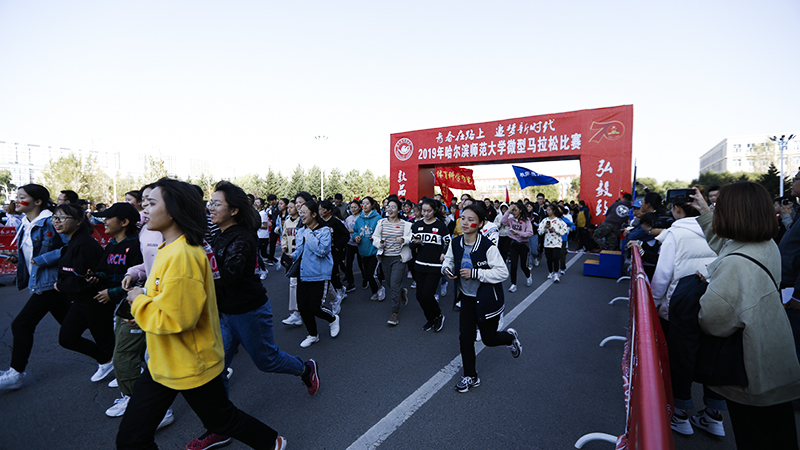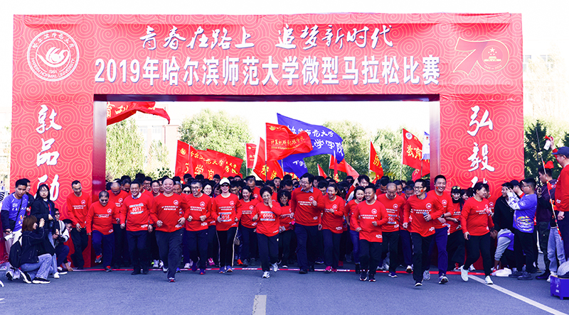10月9日下午,在我校深入开展“不忘初心,牢记使命”主题教育之际,学校大学生体育运动委员会、校团委共同举办的“青春在路上 追梦新时代”2019年哈尔滨师范大学微型马拉松比赛在江北校区举办。学校领导和3000余名参赛师生、志愿者参加活动。活动旨在号召广大青年学生弘扬爱国主义精神,积极参与体育运动,展现新时代大学生昂扬向上的精神风貌。