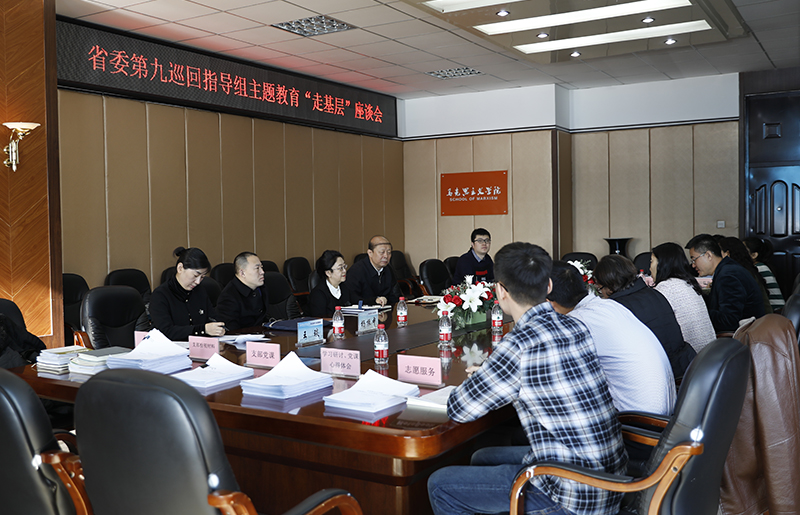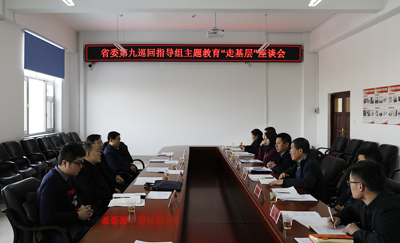 (刘强/文)11月14日,省委第九巡回指导组组长、省科学院党组书记赵梅,巡回指导组成员、省军民融合办规划与法规处处长栾志坚,巡回指导组成员、省委巡视办纪检监察员杨振中到我校就“不忘初心、牢记使命”主题教育工作推进情况进行检查指导并召开工作座谈会。校党委书记,党委副书记杨锐锋,党委常委、组织部长李世彬,学校相关单位负责同志和被调研单位领导班子成员、师生代表参加调研座谈会。