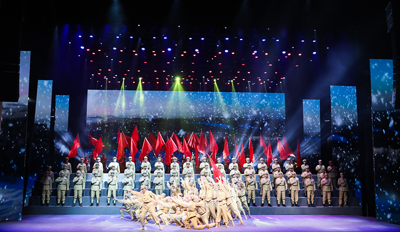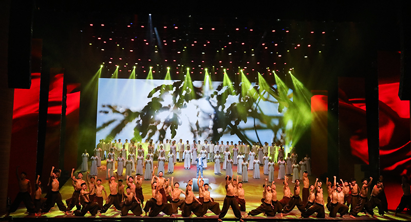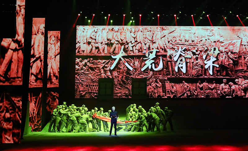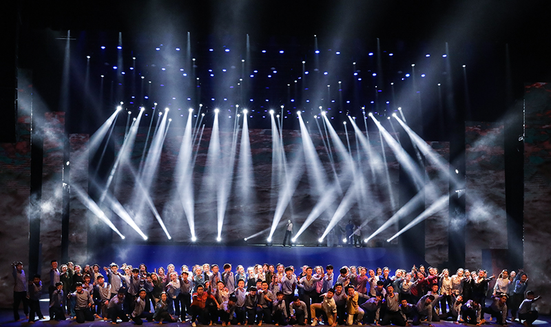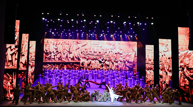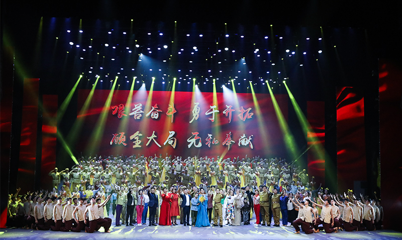 演出结束后,出席领导走上舞台,亲切慰问演职人员,并与参加演出和保障的全体师生合影,共同庆祝大型音乐舞蹈史诗《大荒魂》在哈尔滨大剧院演出大获成功。