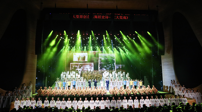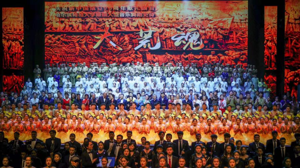 学校党委在向省委宣传部汇报后,得到了极大认可并给予政策支持。与北大荒集团沟通后,达成联合打造这部原创作品的合作协议。之后,学校党委责成一名党委副书记牵头、党委宣传部统筹此项工作。学校多次组织音乐学院、传媒学院领导和专家研讨、构思、策划,又多次与文化主管部门、北大荒集团领导以及几代北大荒人沟通、交流、探讨,创作团队十几次到北大荒各地实地踏查、访谈、采风,5月末,终于完成了以几代北大荒人奋斗历程为主题的大型音乐舞蹈史诗《大荒魂》的创作。作品从北大荒这块滋养精神、造就英雄的土地出发,以“奋斗”为主线,以“黑土”为底色,多层次、多色彩描绘北大荒精神的成长历程,提炼、诠释北大荒精神的时代性和传承性,将北大荒精神融入中国特色社会主义新时代的时代精神,诠释北大荒与龙江四大精神的精神联系,从中汲取新时代龙江振兴发展的精神营养和智慧力量。