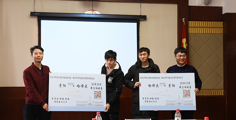 秦瑞新在致辞中表示,支持教育事业、奉献爱心,是每一个企业、每一个公民的责任,公司将为贵州籍2018级和2019级特困学生资助寒假往返贵阳的学生票,使他们能顺利返乡返校。他希望通过此次公益活动,为振兴地方教育事业尽一份微薄之力,也表达了茅台人对哈师大学子的关切之情。