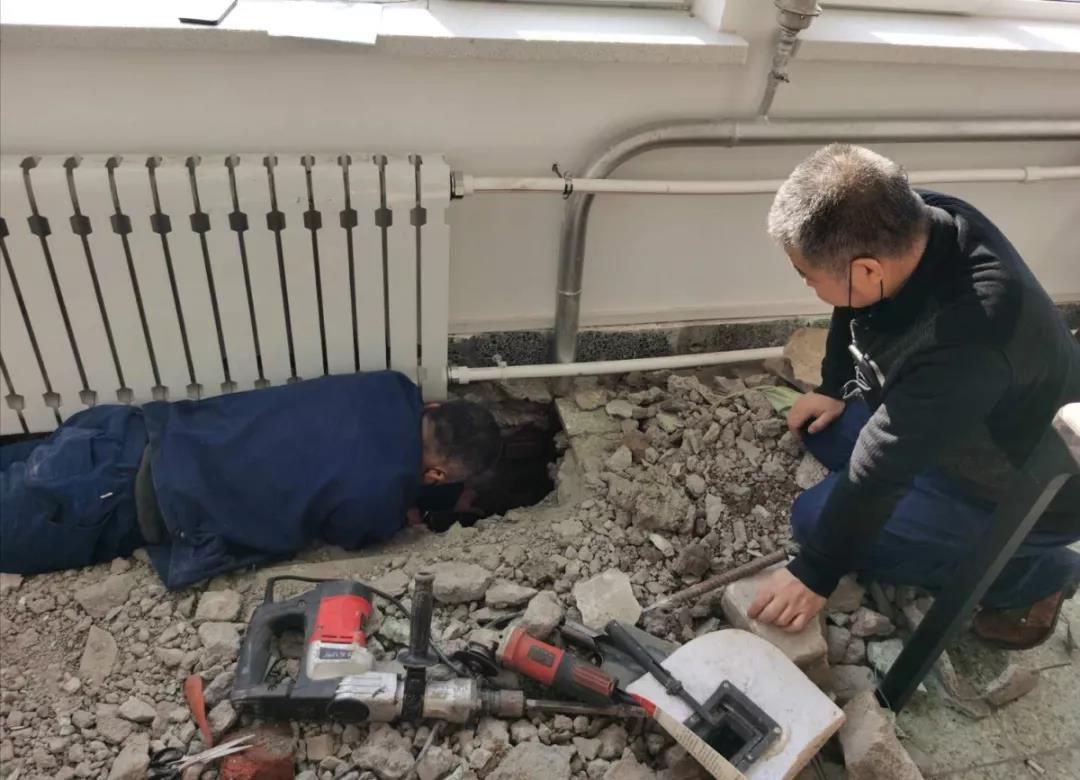 2月4日傍晚时分,江南校区管网突发爆裂,水暖科以科长唐晓东、班长高峰为首的全体工作人员以抢修为令,来不及吃热乎的饭菜,撇开咿呀求抱的幼儿,冲入寂静无人的街道,全部在第一时间赶到现场。当工人们擦去汗水的时候,在教职工浑然不觉停暖的时候,只见拂晓微茫,天边有蒙蒙的曙光。
