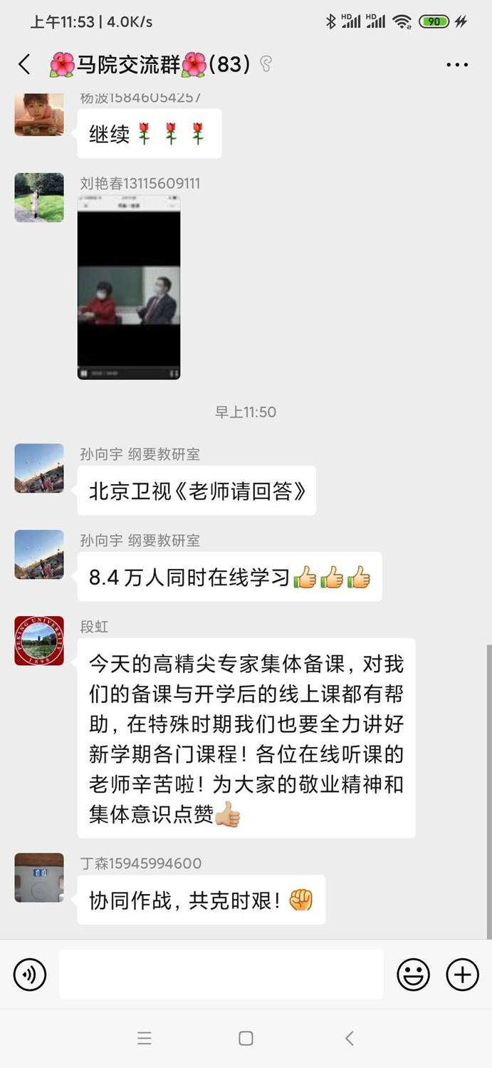 (梁巍/文)受疫情影响,按照教育部以及省教育厅的统一部署,哈尔滨师范大学延迟了春季学期的返校时间,本着“不返校,不停教,不停学”的原则,马克思主义学院充分认识疫情防控期间讲好思政课的重要意义,依托在线课程教学资源、多元网络授课平台,及时将疫情防控的素材转化为深刻而鲜活的教材,将战“疫”思政课作为检验和提升教学能力的磨刀石,积极开展了疫情防控期间的思政课线上教学准备工作。