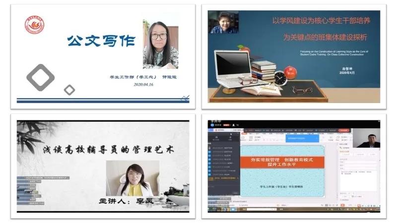 做好高校学生工作,辅导员队伍建设是关键。建设一支高素质的辅导员队伍,职业培训是基础。为进一步提高我校辅导员职业能力和专业素养,切实提高我校学生工作水平,在疫情防控形势下,学生工作部(学生处)努力探索创新辅导员培训模式,采取线上直播方式进行培训,在网络中学习,在云端上研讨,激发辅导员内生动力,引导辅导员尽快了解并适应工作环境,锤炼本领,成长为“政治强、业务精、纪律严、作风正”的优秀辅导员;共情共力,全力推动我校学生工作再上新的台阶,取得新的成绩。
