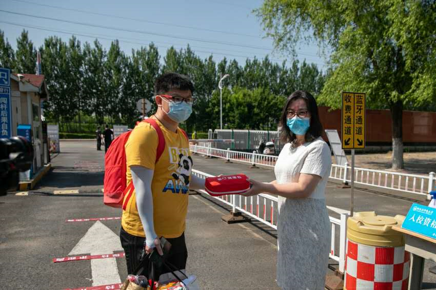 图 学校领导为返校研究生发放防疫“爱心健康包”