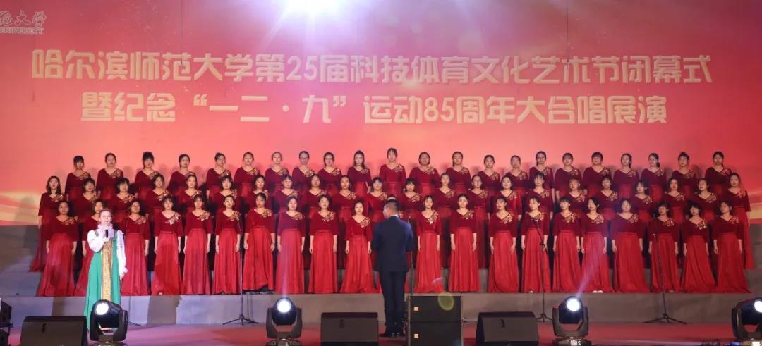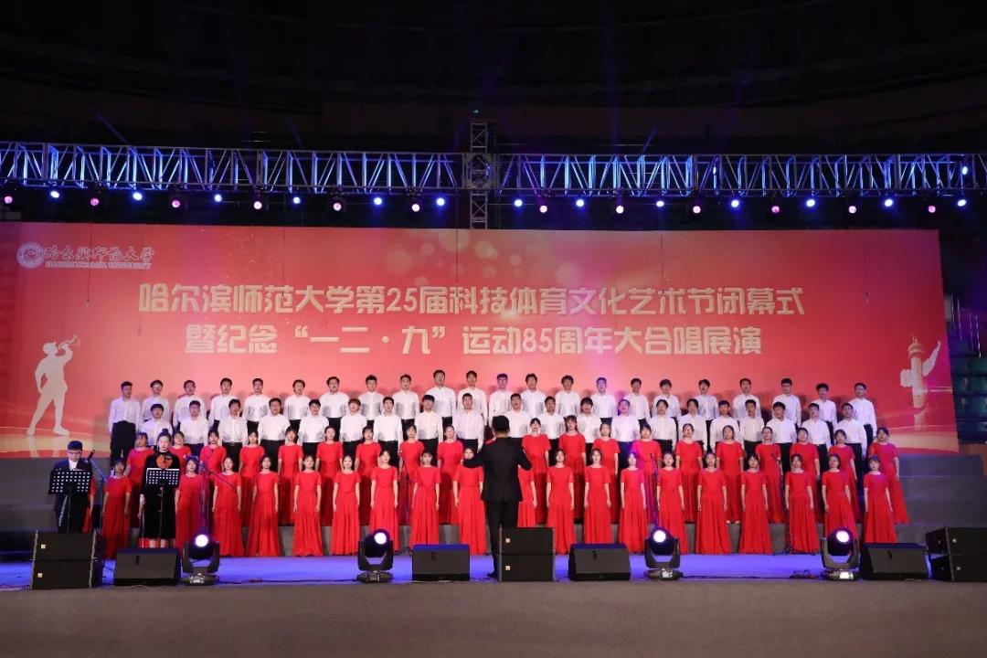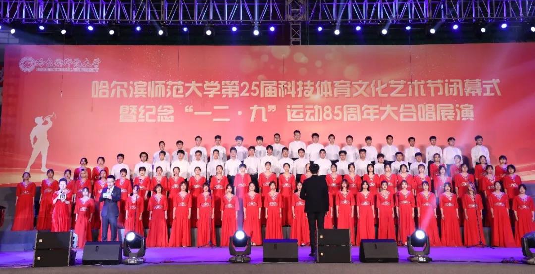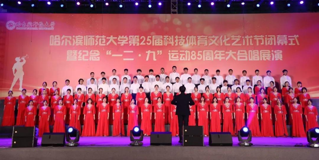 颁奖仪式后,纪念“一二·九”运动85周年大合唱获奖学院生命科学与技术学院、西语学院、斯拉夫语学院、管理学院和美术学院等五个学院进行了大合唱展演;首次组建亮相的辅导员队伍合唱团演唱了《南泥湾》、《走向复兴》两首歌曲,展现了学工人饱满的工作状态和昂扬的奋斗姿态;“最佳表演奖”获奖单位音乐学院合唱团演唱了《哈尔滨师范大学校歌》、《保卫黄河》两首歌曲,掀起了展演活动的高潮。活动在全体师生同唱《歌唱祖国》的歌声中圆满结束。