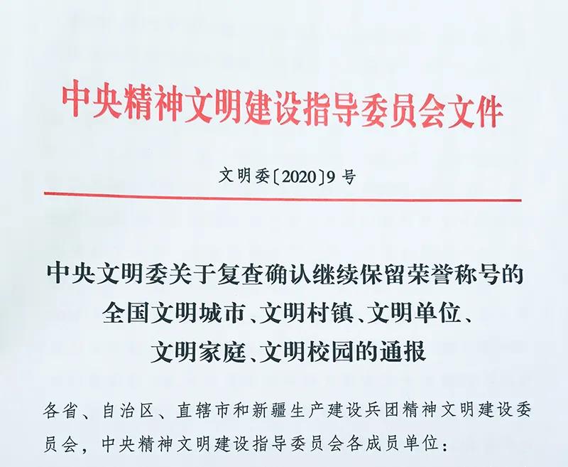 (盛志伟/文)2020年11月,中央精神文明建设指导委员会发布了《关于复查确认继续保留荣誉称号的全国文明城市、文明乡镇、文明单位、文明家庭、文明校园的通报》,我校通过复查确认继续保留“全国文明校园”荣誉称号。