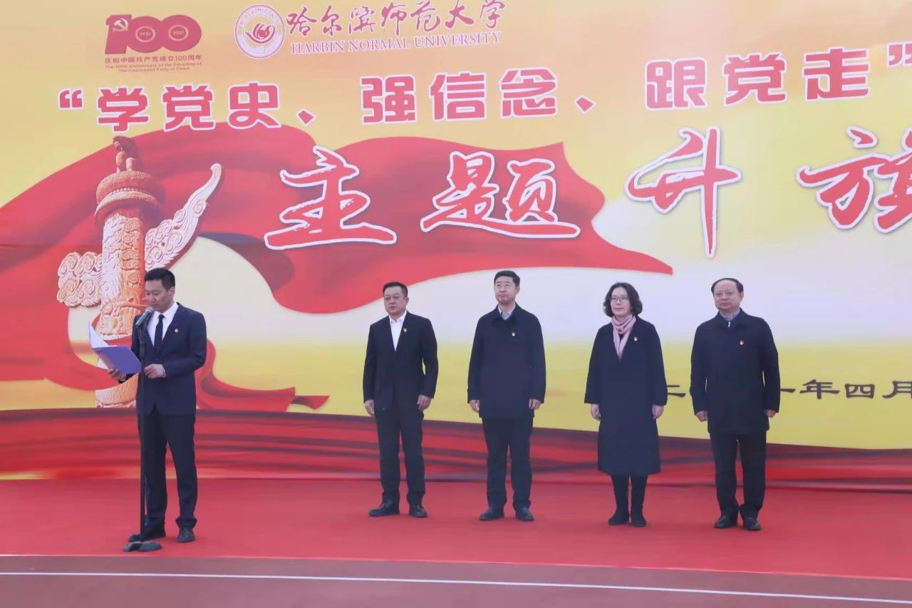 朝阳初升,欣欣向荣。在喜迎中国共产党成立100周年、我校70周年校庆到来之际,为进一步传承党的光荣传统和优良作风,重温党的奋斗历程和伟大成就,推动我校青年党史学习教育深入开展,按照学校党史学习教育总体安排,4月6日,我校在体育场举行“学党史、强信念、跟党走”青年党史学习教育主题升旗仪式。校党委副书记、工会主席郭砾,党委常委、组织部部长李世彬,党委常委、宣传部部长姜玉洪出席升旗仪式,学生工作部(学生处)、校团委相关同志,各学院党委副书记、团委书记、辅导员以及各年级学生党员和2020级全体学生1万余人参加升旗仪式。