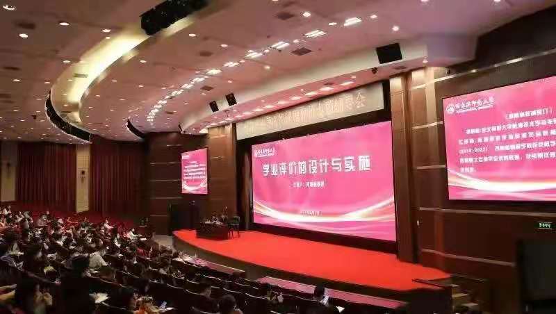 (李方越/文)为深入落实专业认证理念,加强学业评价,持续提高课堂教学质量,6月7日上午9时,学校在科学会堂召开“面向产出导向的课程评价”专题辅导报告会,邀请教育部教学指导委员会教育技术分委员会委员、教育部师范专业认证结论审定委员会委员、东北师范大学博士研究生导师郑燕林教授作报告。省教育评估院院长景丽英、省教育评估院高校师范类专业认证项目负责人张立明出席会议。各教学单位院长、教学副院长、专业负责人,校院全体教学督导,教务处、高教研究与教学质量评估中心、教师教学发展实训中心副处级以上干部及教师教育学院研究生代表400余人参加会议。报告会由校长孙立军主持。