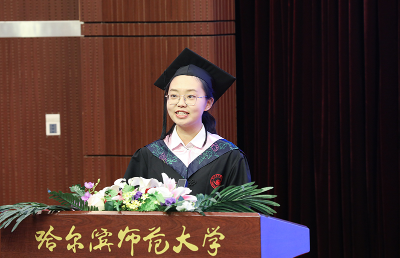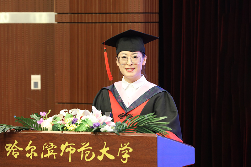 毕业研究生代表、国家奖学金获得者、国家社科基金青年项目主持人、教育科学学院课程与教学论专业博士生林琳表示,在未来将满怀满怀豪情,以实际行动,弘扬行知精神、师范精神、校训精神,担当振兴龙江教育的光荣使命,去追逐远方的真理与光明。