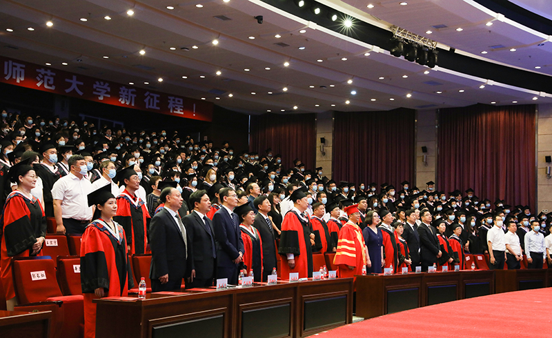 在雄壮的国歌声中,毕业典礼暨学位授予仪式拉开帷幕。校学位评定委员会副主席、副校长、博士研究生导师臧淑英教授宣读了获得博士、硕士、学士学位的2021届毕业生名单和2021届研究生优秀毕业生、本科优秀毕业生名单;校学位评定委员会副主席、党委常委、副校长、博士生导师张喜田教授宣读了“大学生志愿服务西部计划”志愿者名单和选调优秀毕业生到基层工作人员名单;校学位评定委员会成员、党委常委、副校长、博士研究生导师李庆霞教授宣读了“宁齐堃”奖学金、田家炳优秀师范生奖学金获得者名单。
