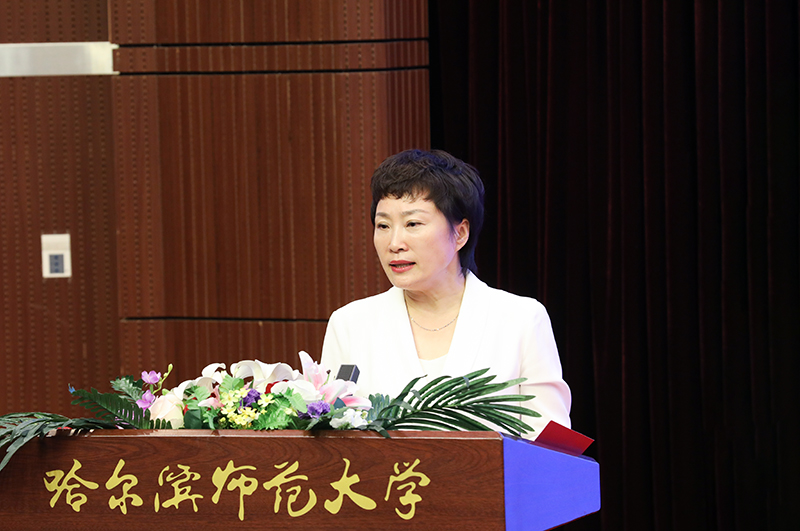 校友代表、省五一劳动奖章获得者、省优秀教师、“哈尔滨市教育系统四有好校长标兵”荣誉称号获得者、哈尔滨市第十三中学校长、我校政治教育系1996届毕业生王茹在发言时,深情回忆了自己毕业时的心情,嘱咐学弟学妹们要遵从自己的本心,牢记教育初心,无畏选择,敢于拼搏,做好未来规划,多读书多思考,努力成为有使命感的优秀教师。