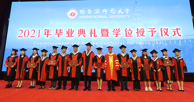 最后,现场全体师生齐声高唱《哈尔滨师范大学校歌》,2021年毕业典礼暨学位授予仪式在歌声中落下帷幕。