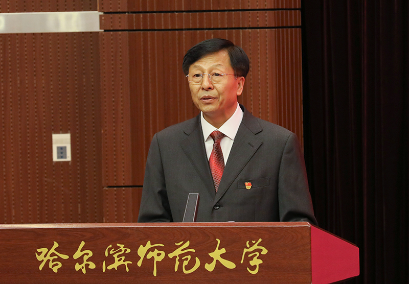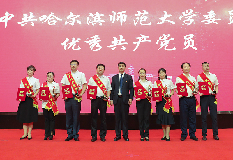 校党委书记对全校党组织和党员提出希望。全校各级党组织和广大党员要以此次表彰大会为契机,深刻铭记党的光辉历程、牢记党的初心使命,赓续红色血脉,用党的奋斗历程和伟大成就鼓舞斗志、指引方向;用党的光荣传统和优良作风坚定信念、汲取力量;用党的历史经验和实践创造启迪智慧、砥砺品格,让我们共同努力,奋力谱写新时代哈师大发展建设的崭新篇章,为凝聚实现中华民族伟大复兴的磅礴力量不懈奋斗。