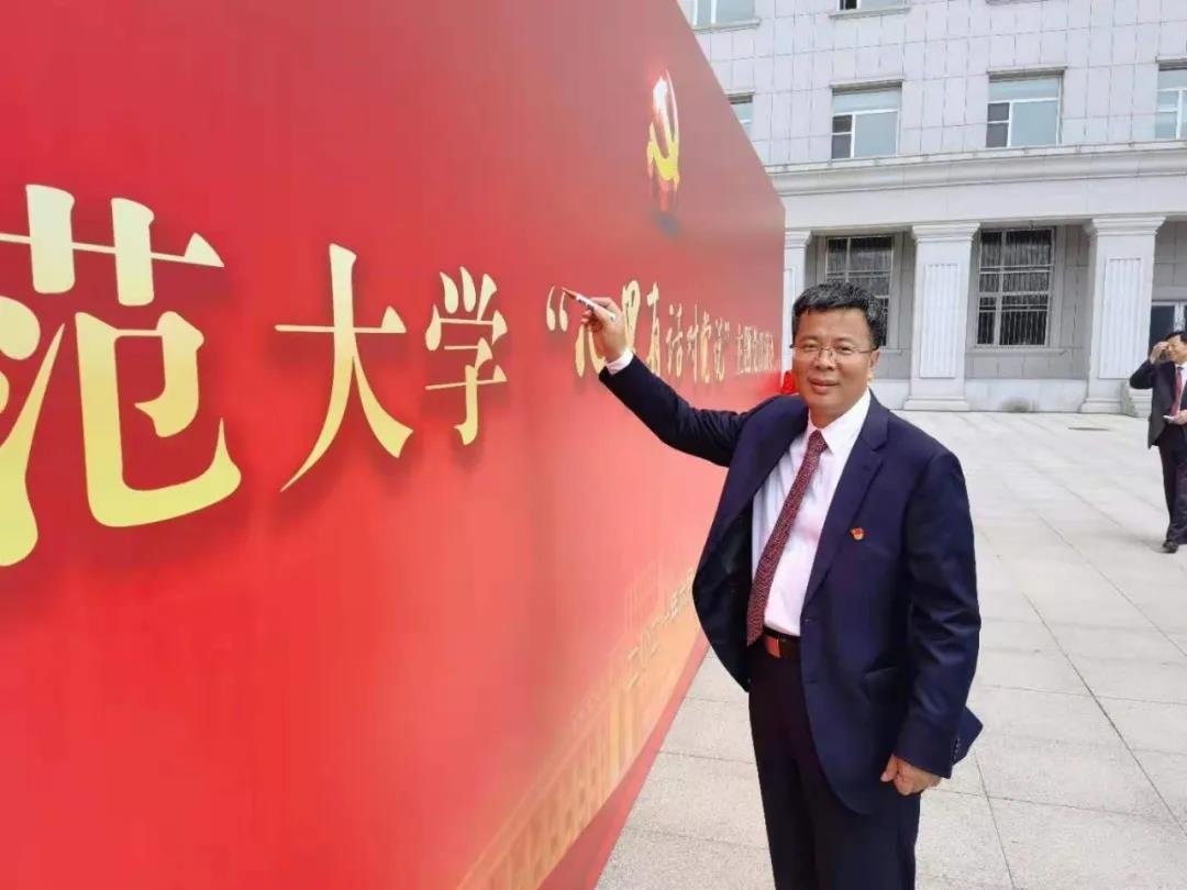 (刘岩冬/文)6月30日下午,学校在行知楼前组织了“心里有话对党说”主题党日活动,学校党政领导、学校“两优一先”表彰对象和党员代表参与了活动,并纷纷在背景板上写下了自己的名字,用赤诚之心向党致敬,诠释了全体党务工作者和共产党员对党的初心不改和永远追随。