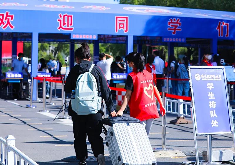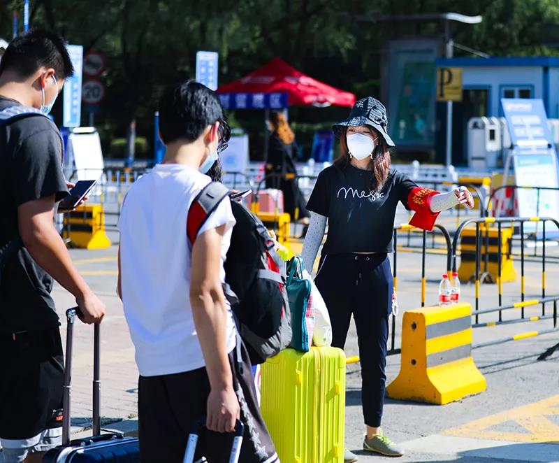 “同学你好,欢迎回家!”政工干部、保卫处工作人员和党员志愿者早早来到学校大门口入校通道,迎接学生归来。大家对返校学生进行体温检测、行李消毒、“入校码”核验,帮助同学们提行李,耐心引导学生入校,校园服务车载着学生回到阔别已久的宿舍,现场秩序井然、有条不紊。