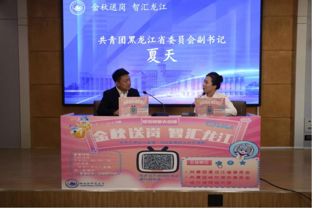 (冯亮/文)10月18日13时30分,由我校与团省委、团市委联合主办的“金秋送岗、智汇龙江”留省就业大直播活动通过我校刚刚开设的B站直播间“哈师大就业大直播”开启首场直播,团省委副书记夏天,团市委副书记王洪新,我校党委副书记、工会主席郭砾做客直播间。本次大直播以留省就业为主题,与“大直播”同步进行的视频双选会有80家省内企业参加,提供就业岗位4976个。本次大直播活动得到我校2022届毕业生积极响应,在直播间参与人数近5000人,在线互动210人次;毕业生参与视频双选会积极踊跃,近3000人参与同步举办的视频双选会,收到良好效果。
