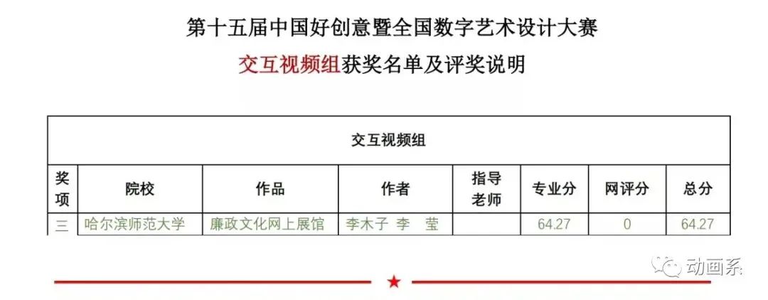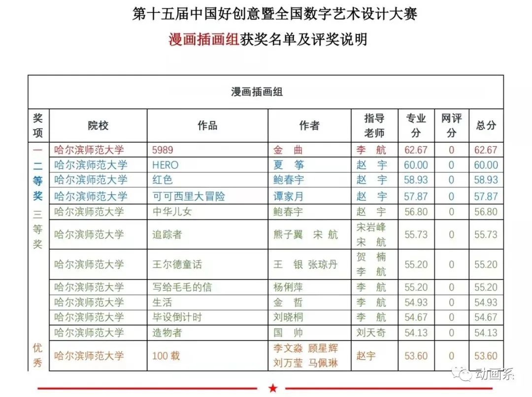 中国好创意赛事一经发布就在龙江高校产生强烈的反响,传媒学院动画系同学们参赛热情高涨,踊跃参加。在这收获硕果又播种希望的美好季节,传媒学院动画系斩获第十五届好创意大赛国赛多项荣誉:“一等奖1项、二等奖4项、三等奖10项。”这些成绩的取得离不开动画系老师们的辛勤付出和同学们的努力拼搏,每一项成绩的取得都包含着全系师生们的辛劳和汗水。春华秋实,硕果累累。传媒学院动画系师生创作的多项作品在第十五届“中国好创意大赛”中斩获佳绩,作品在质量和数量上均名列参赛院校前茅。这也是动画系先进教学思维与方法的成果展现。传媒学院动画系会继续以“国家级一流专业”建设为源动力,夯实基础,全面提高动画人才培养能力。创作出无愧于时代的动画作品,为哈尔滨师范大学的强校建设多做贡献