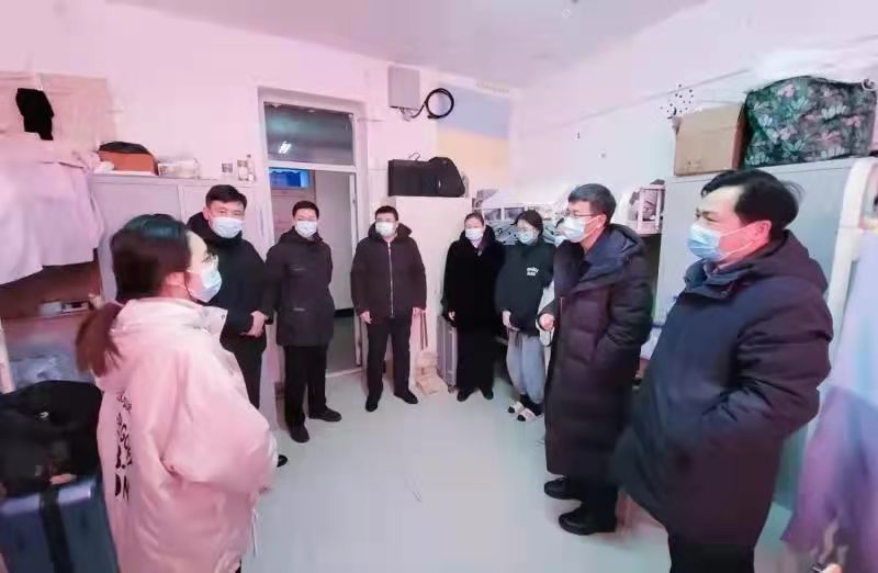 随后,孙立军一行来到学生公寓,看望慰问假期留校学生。在学生五公寓,孙立军走进寝室,检查室内供暖情况,与学生亲切交流,了解她们假期在校学习、生活情况。孙立军叮嘱学生们,留校期间一定要注意个人安全,保持良好的作息习惯;返乡途中要尽量“两点一线”,做好个人防护;遇到困难要及时向学校反映,学校将尽最大努力帮助学生。在留学生二公寓,孙立军详细了解外籍留学生在校学习和生活情况,以及疫情对他们的影响。孙立军要求学生部门、后勤部门和相关学院要做好假期留校学生的管理和服务,尽全力保障好假期留校学生的学习和生活。