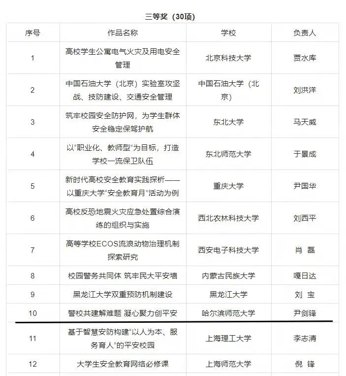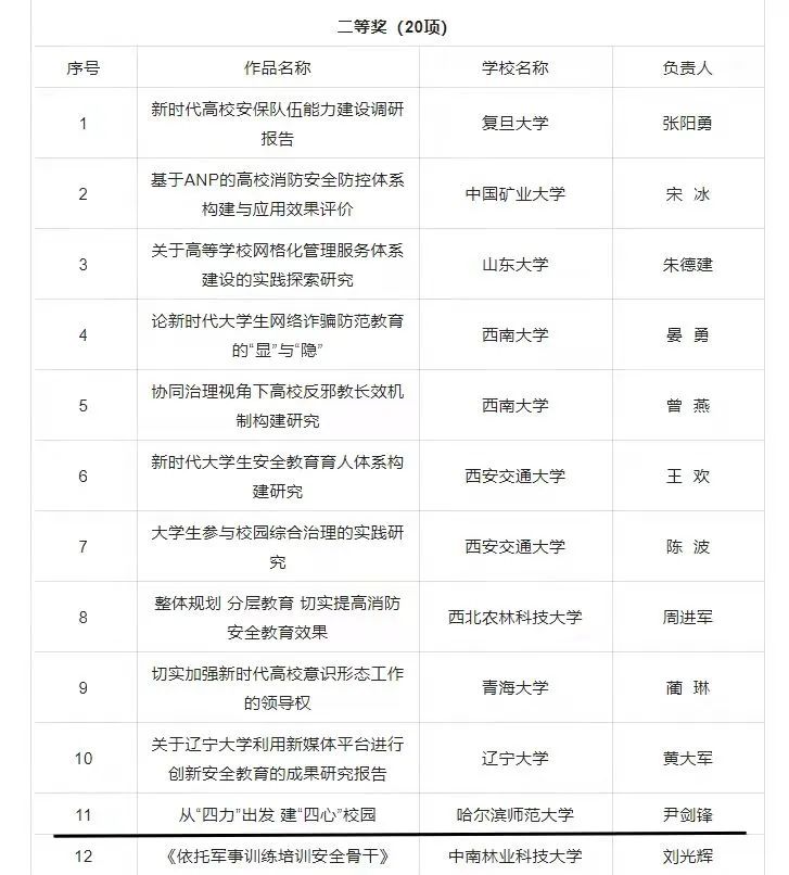 (宋庆春/文)日前,2021年全国高校平安校园建设优秀成果研讨展示活动结果公布。我校党委常委、副校长尹剑锋作为项目负责人,穆春勇、刘宪辉、宋庆春、仲微微为项目团队成员的《从“四力”出发 建“四心”校园》获研究成果二等奖,《警校共建解难题 凝心聚力创平安》获典型案例成果三等奖。