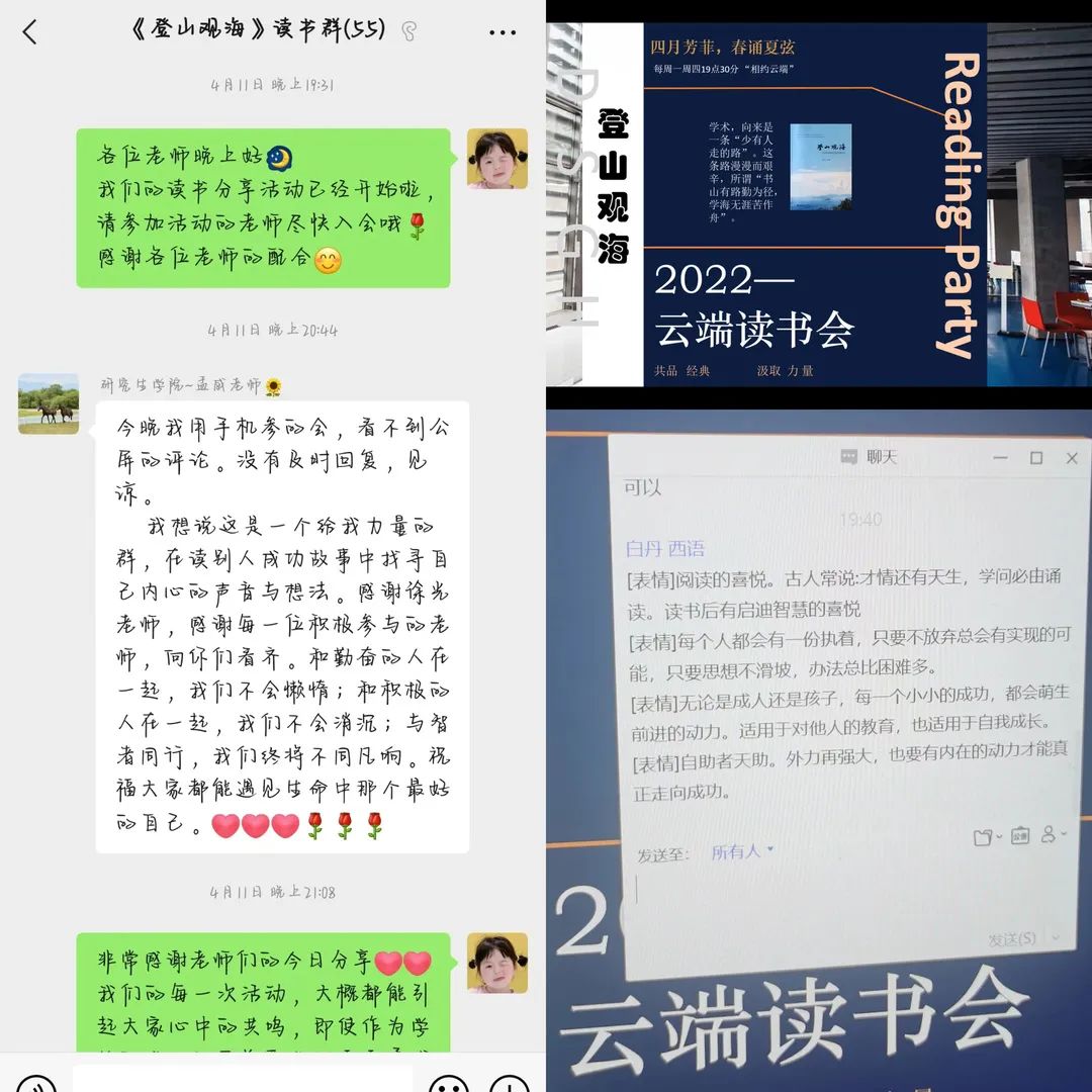 为响应习近平总书记提倡多读书、建设书香社会的号召,我校在第27个世界读书日到来之际,4月2日至23日,由校党委教师工作部、校工会、图书馆联合举办了“四月芳菲•春诵夏弦——教师云端读书”活动。活动旨在为教职工搭建读书平台,形成朋辈学习交流氛围,引导、鼓励广大教职工养成多读书、读好书的良好风尚,进一步提升教职工文化修养,促进教师职业生涯发展,激发教职工工作和生活动力。
