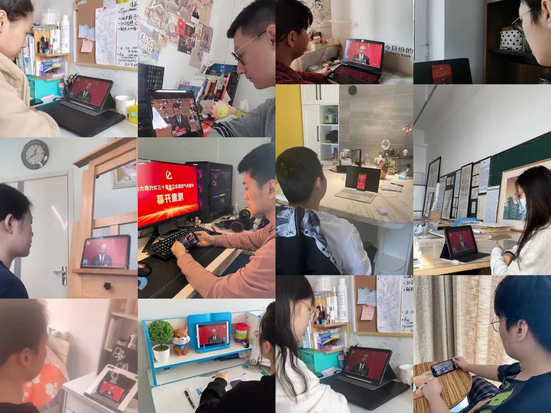 图 各基层党委组织师生通过电视、网络等多种媒体渠道收听收看大会实况