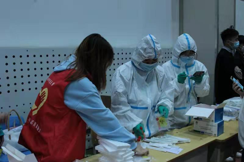全校党员领导干部率先垂范、靠前指挥、担当作为,在打赢疫情防控阻击战中守初心、担使命。学校70余名机关党员干部组建志愿者工作队,参与疫情防控工作,高效完成近20轮核酸检测任务,累计参加志愿服务700余人次,2100余小时,采集核酸检测信息50余万人次,以扎实作风展现党员先锋模范作用,为学生上了一堂生动的实践党课。开学以来,全校8944名青年学生挺身而出、无私奉献,投身“志愿红”“防疫白”的抗疫一线队伍,参与核酸检测、疫苗接种、物资转运等工作233次,用实际行动践行“请党放心,强国有我”的铮铮誓言。