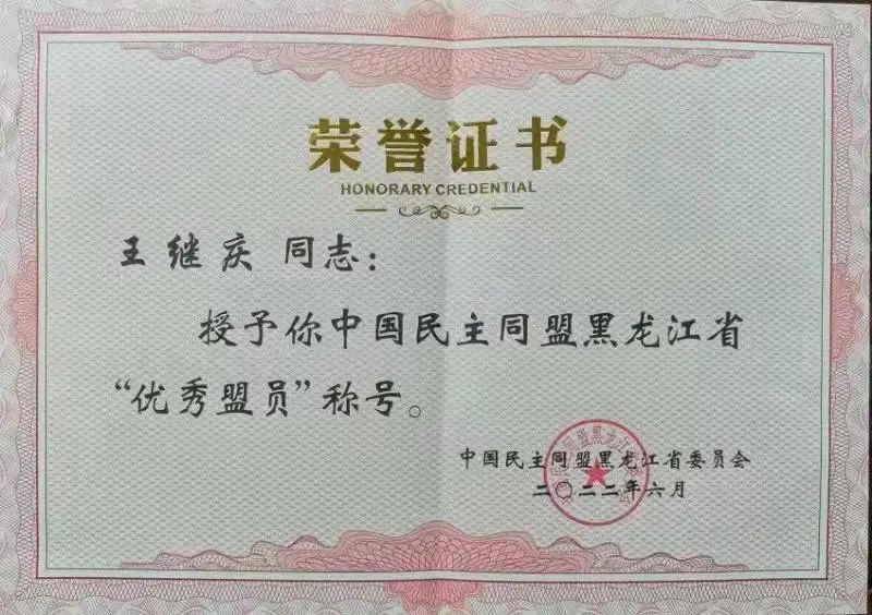 近年来,民盟哈师大委员会在民盟黑龙江省委和学校党委的正确领导下,坚持以思想政治建设为核心、组织建设为基础、履职能力建设为支撑、作风建设为抓手、制度建设为保障,努力建设政治坚定、组织坚实、履职有力、作风优良、制度健全的中国特色社会主义参政党基层组织,工作中取得优异成绩。本次代表大会对过去五年表现突出的先进集体和个人进行了表彰。民盟哈师大委员会被民盟省委授予“先进基层组织”称号,副主任委员王继庆被民盟省委授予“优秀盟员”称号。