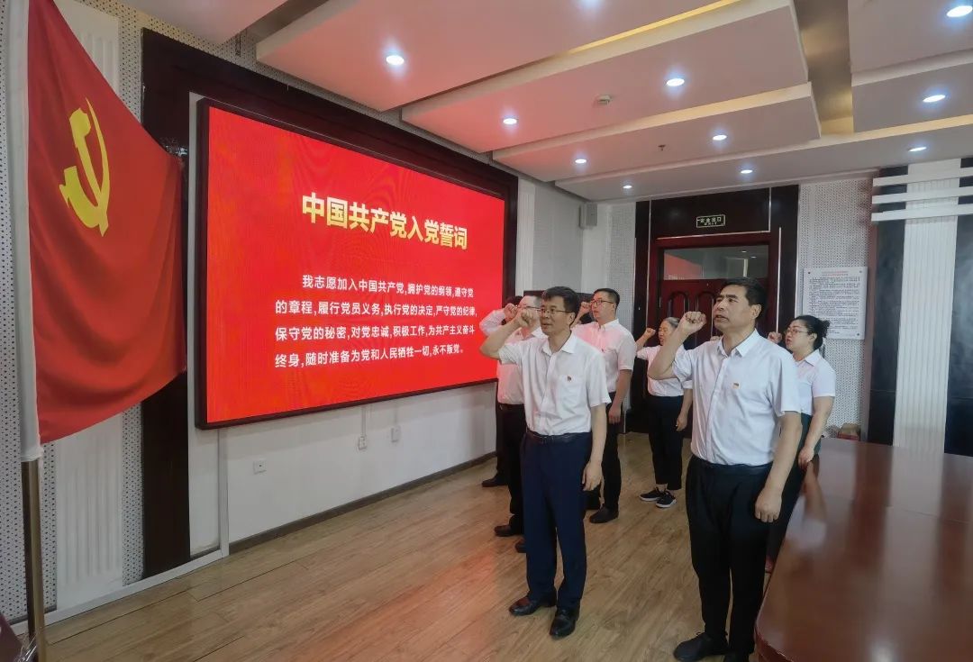 最后,为进一步强化党员意识、铭记入党誓言,支部全体党员面向党旗重温入党誓词。一字一句,铮铮誓言,体现了全体党员对中国共产党的无限忠诚,坚定了入党初心,牢记了奋斗使命。