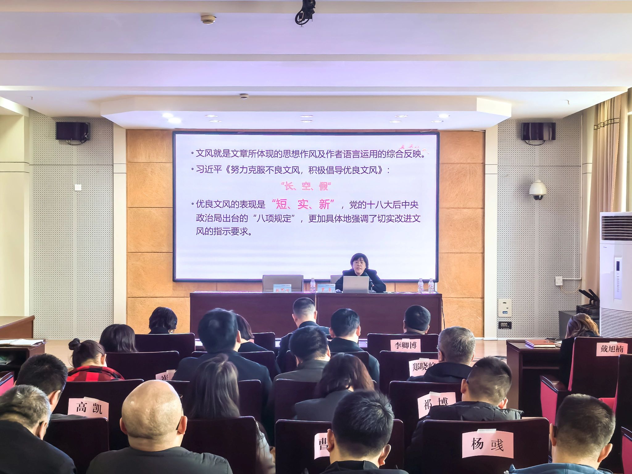 党委副书记王辉作了《深化能力作风建设 展现履职尽责新作为》专题讲座,围绕如何改进工作作风和如何提高工作能力两个方面,分析了干部应如何避免陷入“事务主义”陷阱,对全体干部提出了加强能力作风建设的实际要求。党委常委、纪委书记赵洪斌作了《扣紧廉洁“风纪扣” 筑牢拒腐防变思想根基》专题讲座,带领学员们了解贯彻落实中央八项规定精神的重大意义,结合实际案例分析在六大领域如何防范和惩治腐败,引导营造风清气正的政治生态和良好的育人环境。党委常委、组织部部长刘可心作了《践行好干部标准 锻造干净担当的中坚力量》专题讲座,从好干部标准的历史演进、时代发展、实践要求三方面,引导学员对照好干部标准严要求、讲担当,推进落实各项工作提升质效。文学院副教授罗曼作了《克服形式主义 改进公文文风》专题业务讲堂辅导,通过公文写作实例指导学员通过内容、结构和语言之变走出形式主义,运用公文写作技巧,力戒形式主义。