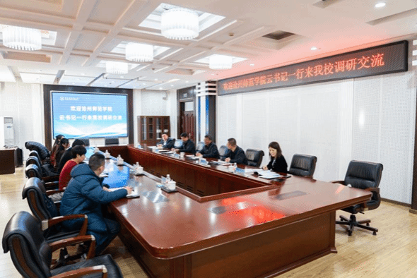 云电军对我校的热情接待表示衷心感谢,并结合沧州市的发展历史、区位特点和教育形势,简要介绍了沧州师范学院的办学历史、专业设置、教师规模等基本情况。他表示,学校明确了建设地方高水平师范院校的发展定位,正在持续推进内涵建设。希望以此次座谈会为契机,向兄弟院校汲取高层次人才引进等方面的经验和智慧,推动学校高质量发展。