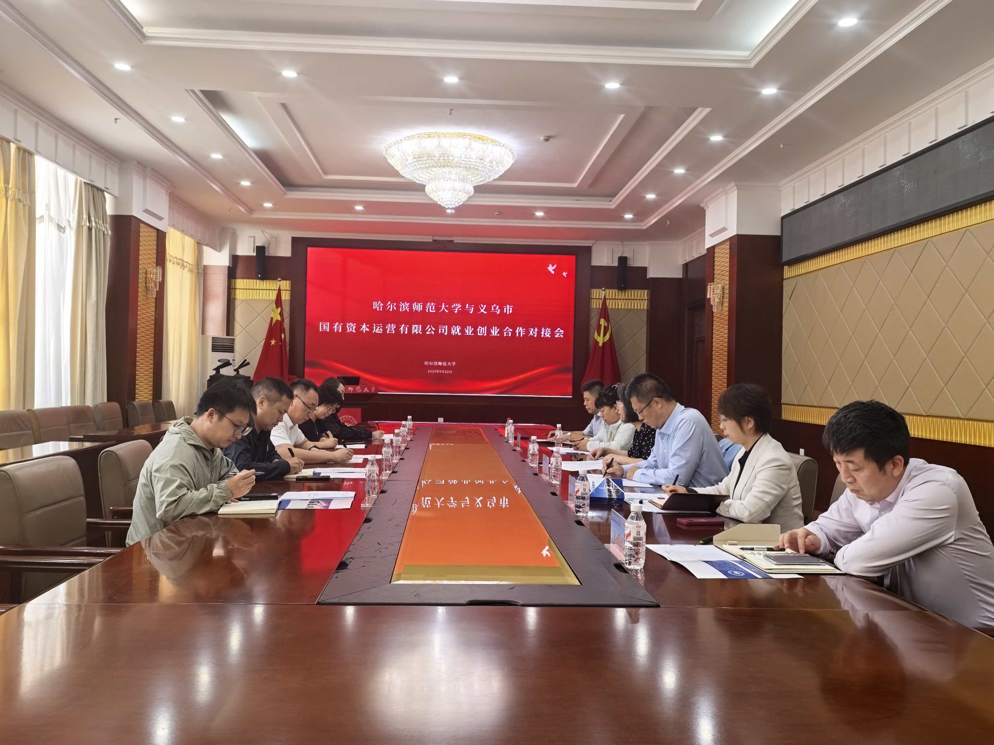 郭砾代表学校对义乌市国有资本运营有限公司一行表示热烈欢迎,并重点介绍了学校的发展历程、学科特色与人才培养情况。郭砾指出,学校与义乌国有资本运营有限公司建立合作关系以来,已有28名毕业生在义乌市就业,义乌已经成为我校毕业生重要就业创业基地之一。郭砾表示,学校要充分发挥自身优势和潜能,为义乌市基础教育发展建设提供人才保障和智力支持,积极探索我校非师专业毕业生赴义乌就业新路径和突破口,助推非师专业毕业生去义乌就业创业,更好服务义乌市经济社会发展。王晨简要介绍义乌市经济社会发展情况。王晨指出,义乌作为国家级综合改革试点城市和全球最大的小商品集散中心,对创意设计和管理等专业人才需求量很大,希望通过深化与哈尔滨师范大学的合作关系,促进带动更多优秀毕业生到义乌义就业创业。